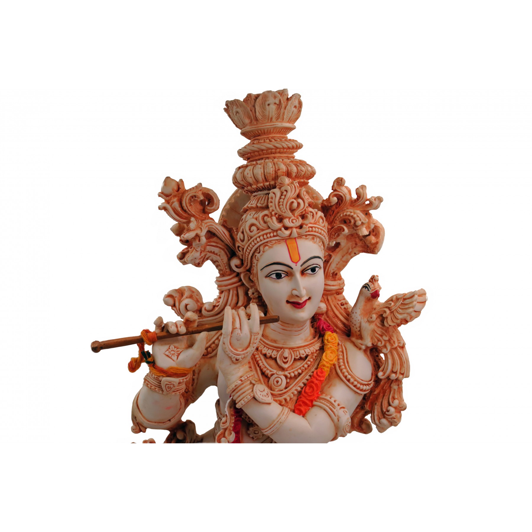 Krishna, one of the most widely revered and popular of all Indian Gods, is considered as the eighth incarnation (avatar) of the Hindu god Vishnu and also as a supreme god in his own right. He is considered to be the most charming and enigmatic of all Hindu Gods. His words of wisdom to his staunch devotee Arjuna, during the war of Mahabharata is the very edifice of the Hindu religion in the form of the timeless Bhagavad Gita. This 29 inch tall statue of Lord Krishna with his signature flute is made of Polyresin, and is simply too breathtaking to take one's eyes off it!
