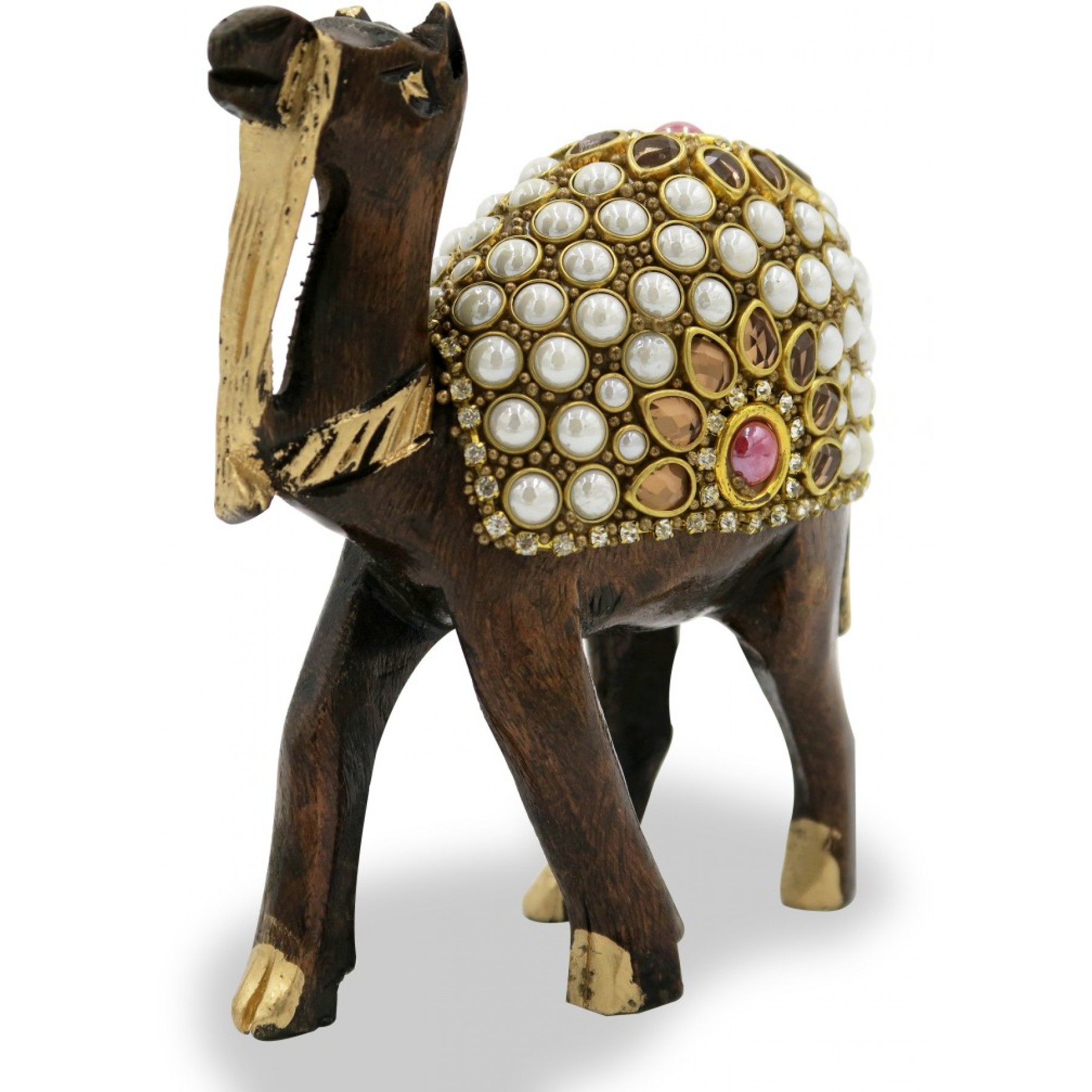 Camel Handmade in Wood with Stone Work - Animal Figurines in Wood