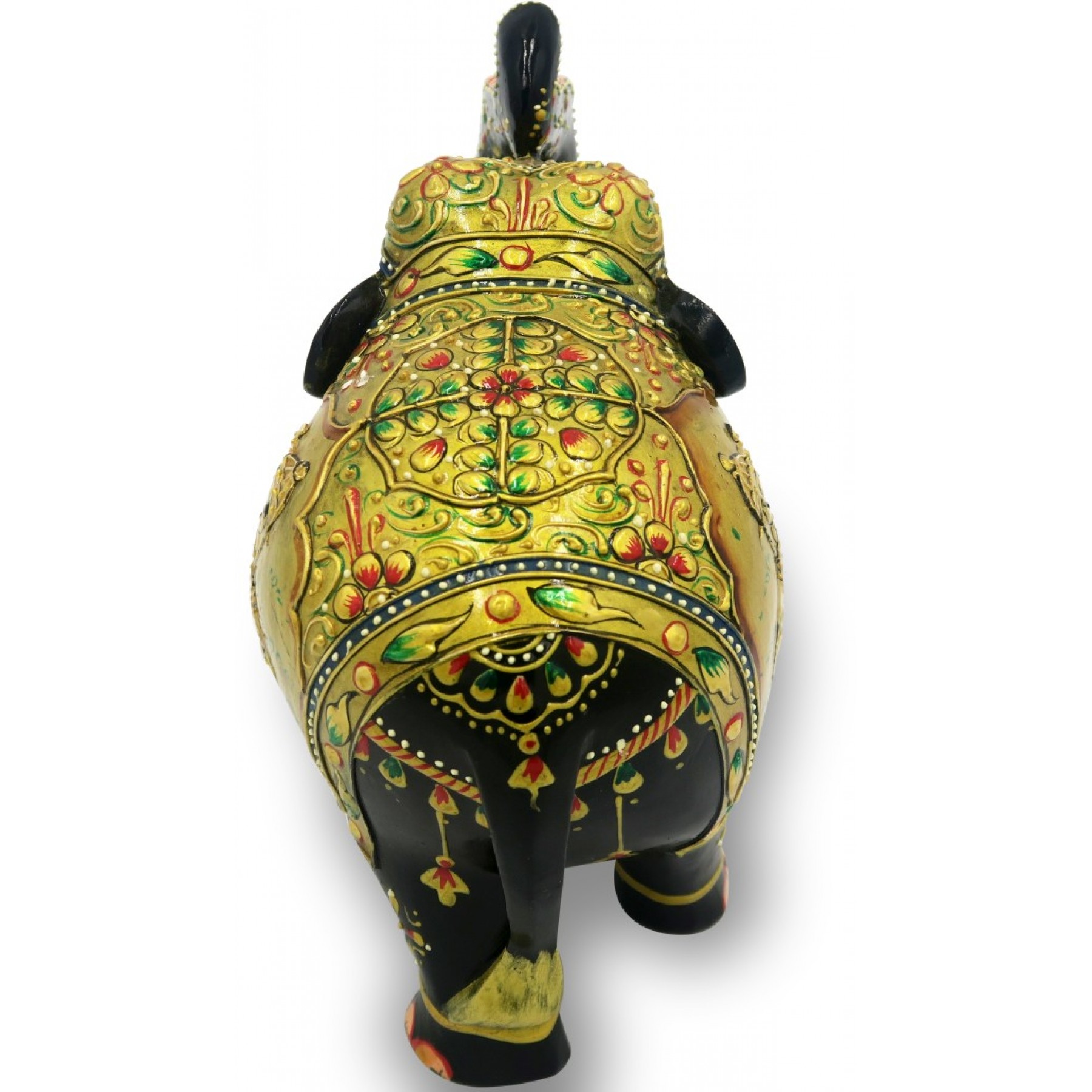 Elephant in Wood Upper Trunk with Miniature Painting - Handmade from India
