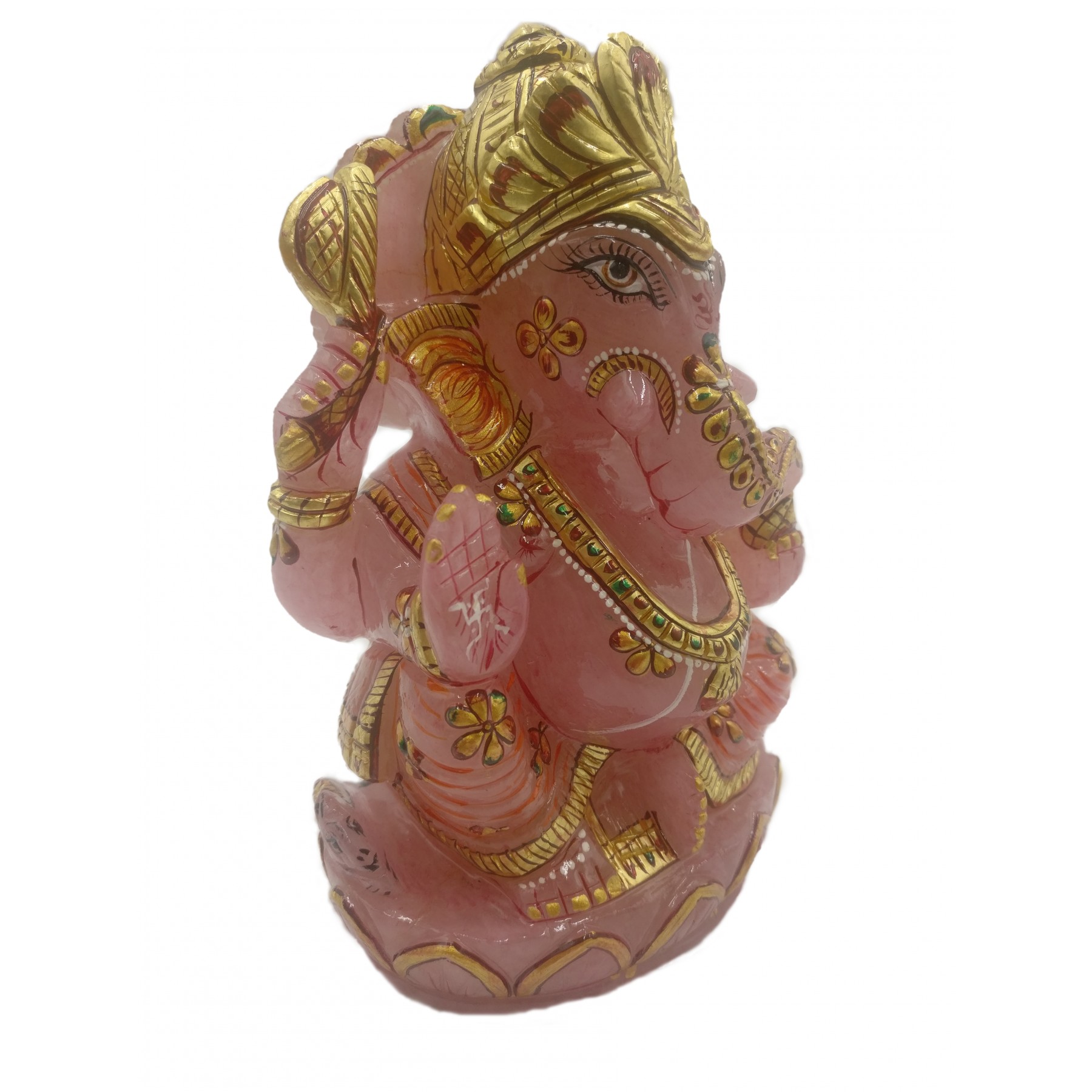 Ganesha Idol in Rose Quartz - Handmade Statue of Lord Ganesha in Semi Precious Stone 1453 gms