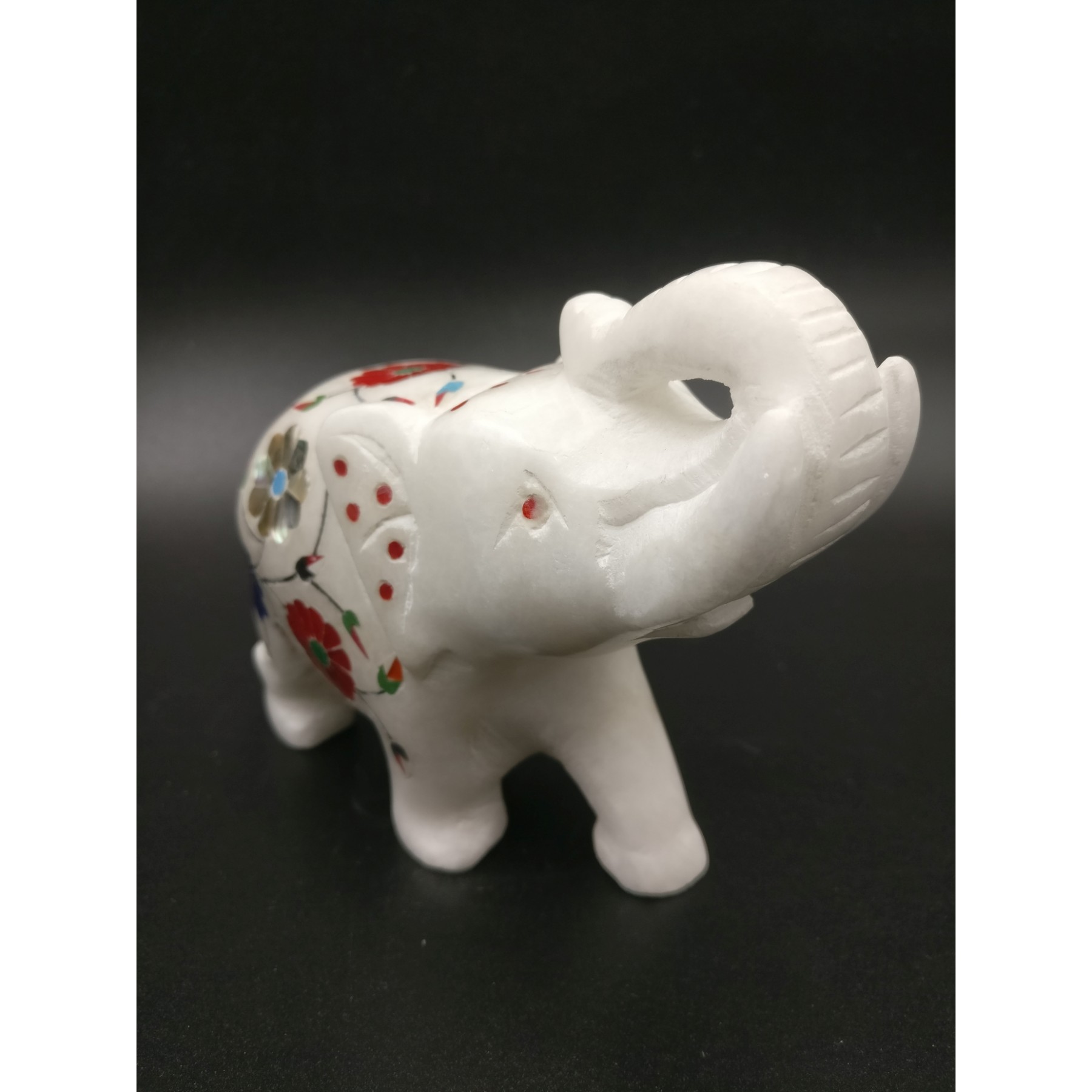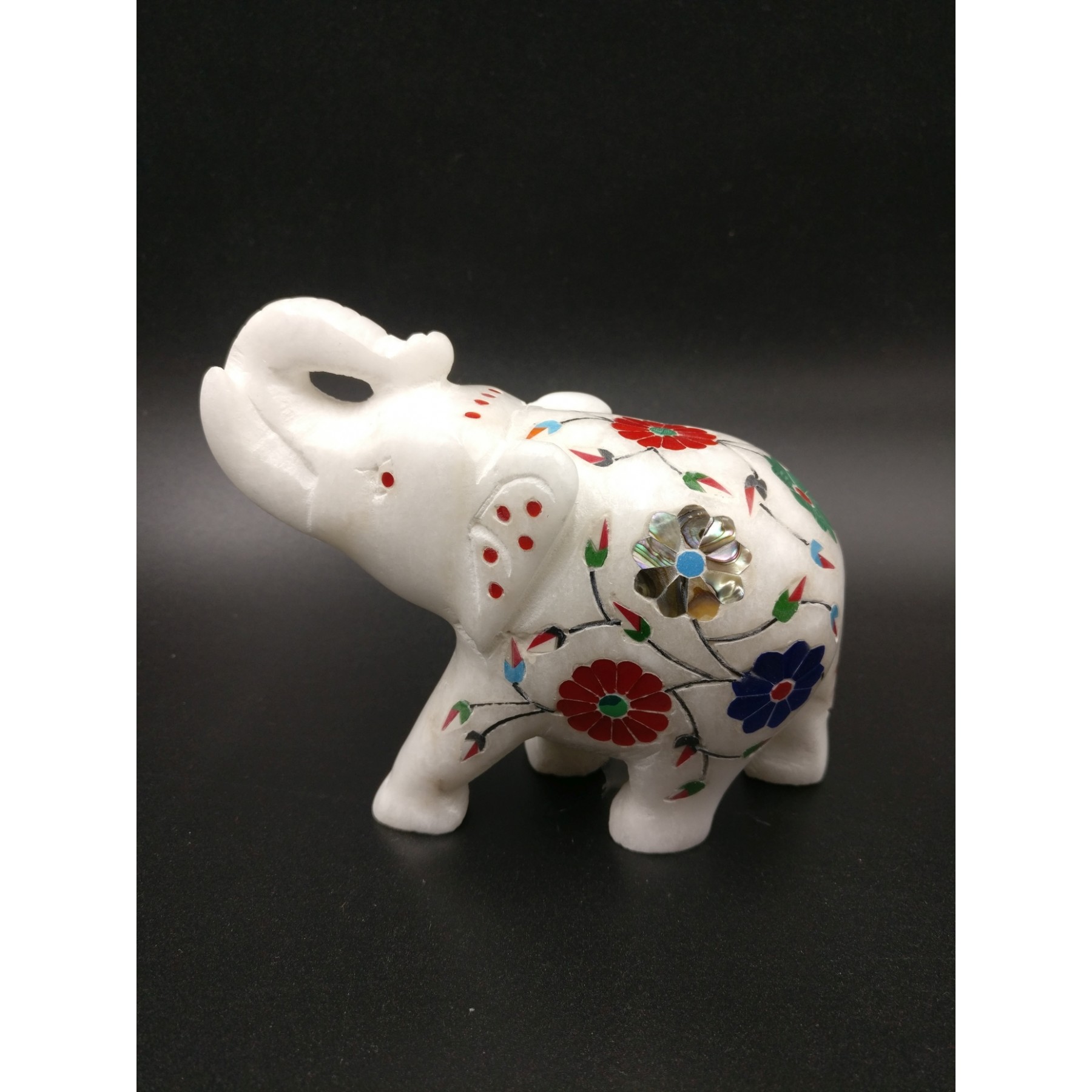 Marble Inlay Elephant 4 inches - elephant gifts and animal figurine home decor in marble - marble inlay work Indian handicrafts