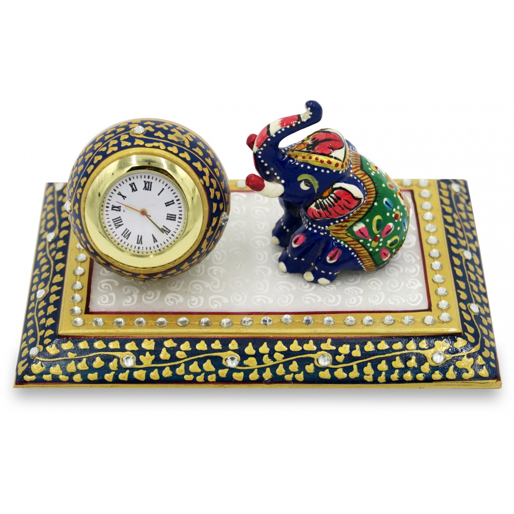 Marble Table Decoration with Watch and Elephant - Handmade Home Decor in Marble