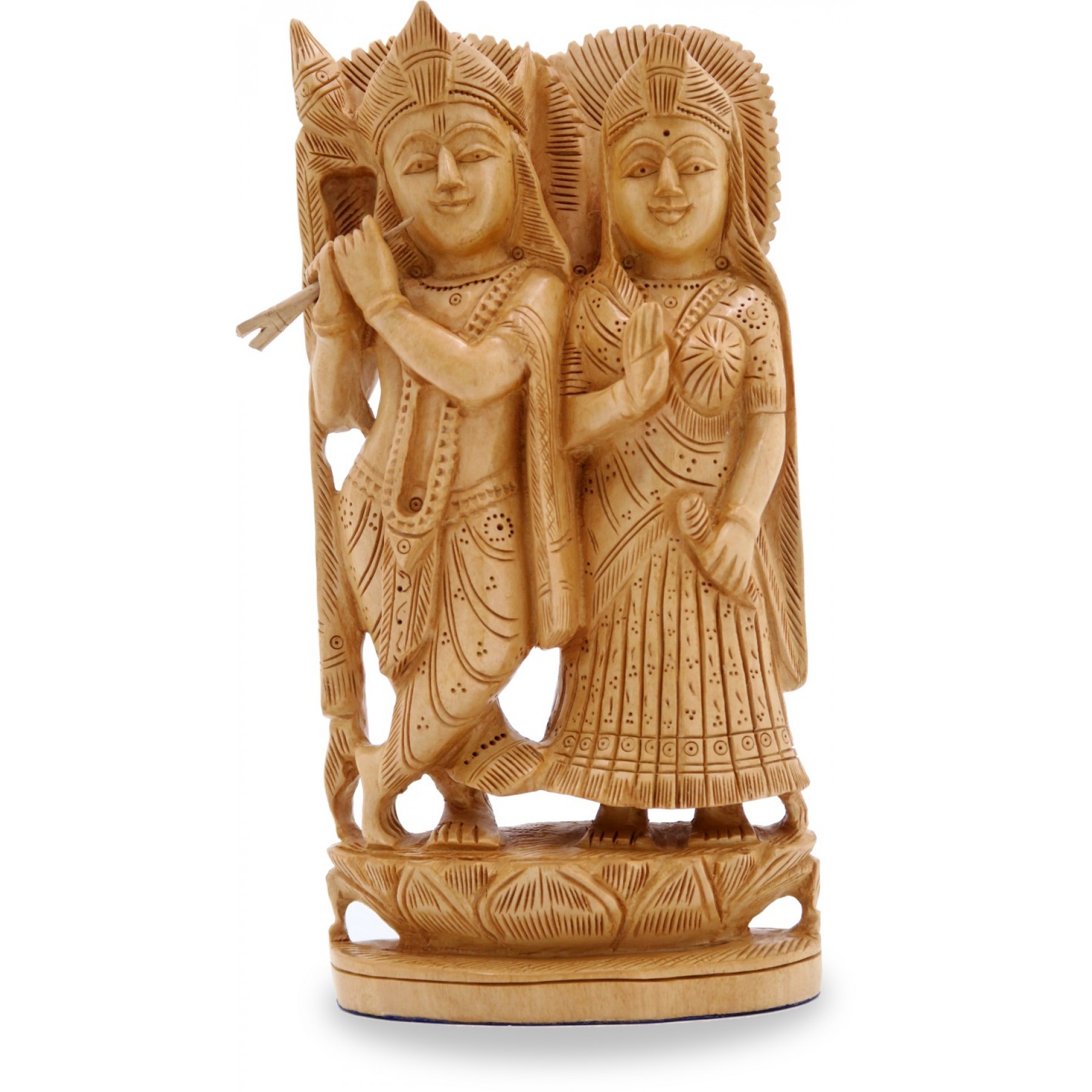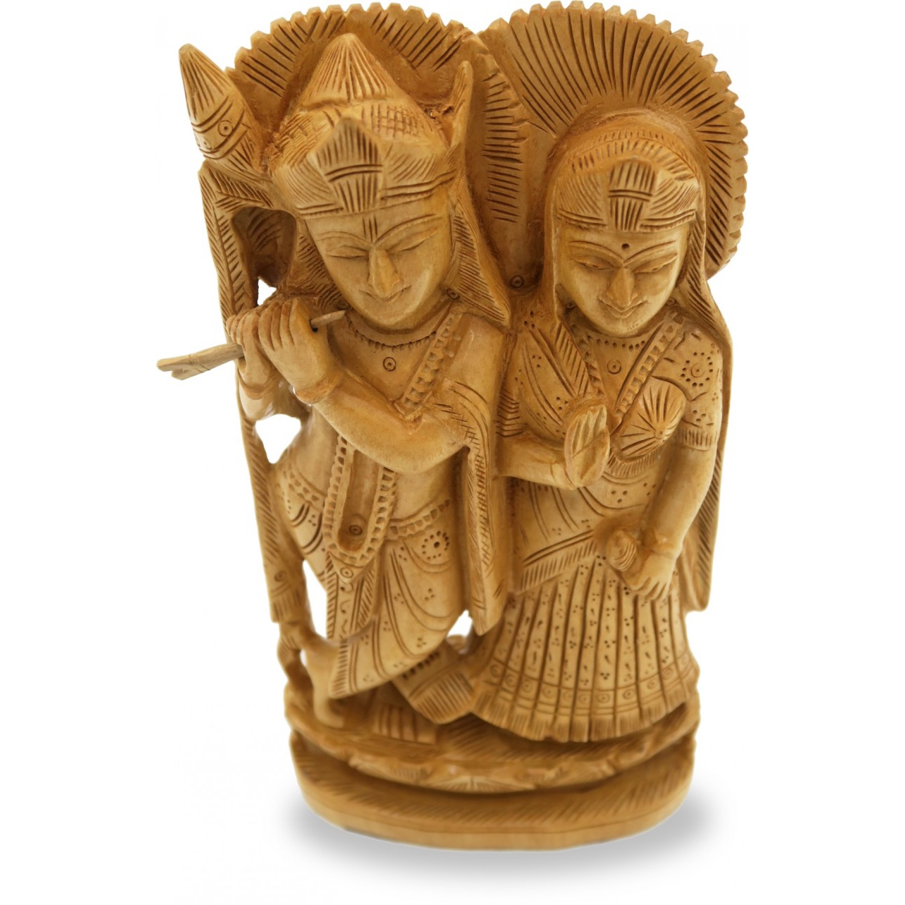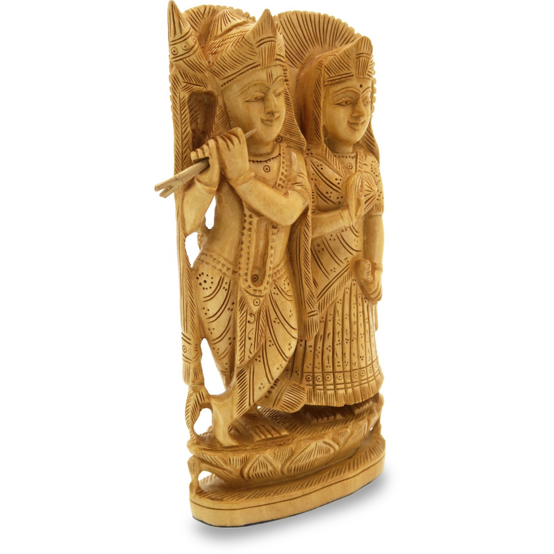 Wooden Radha Krishna Statue - Indian Handicraft Wood Carving of Radhe-Krishna